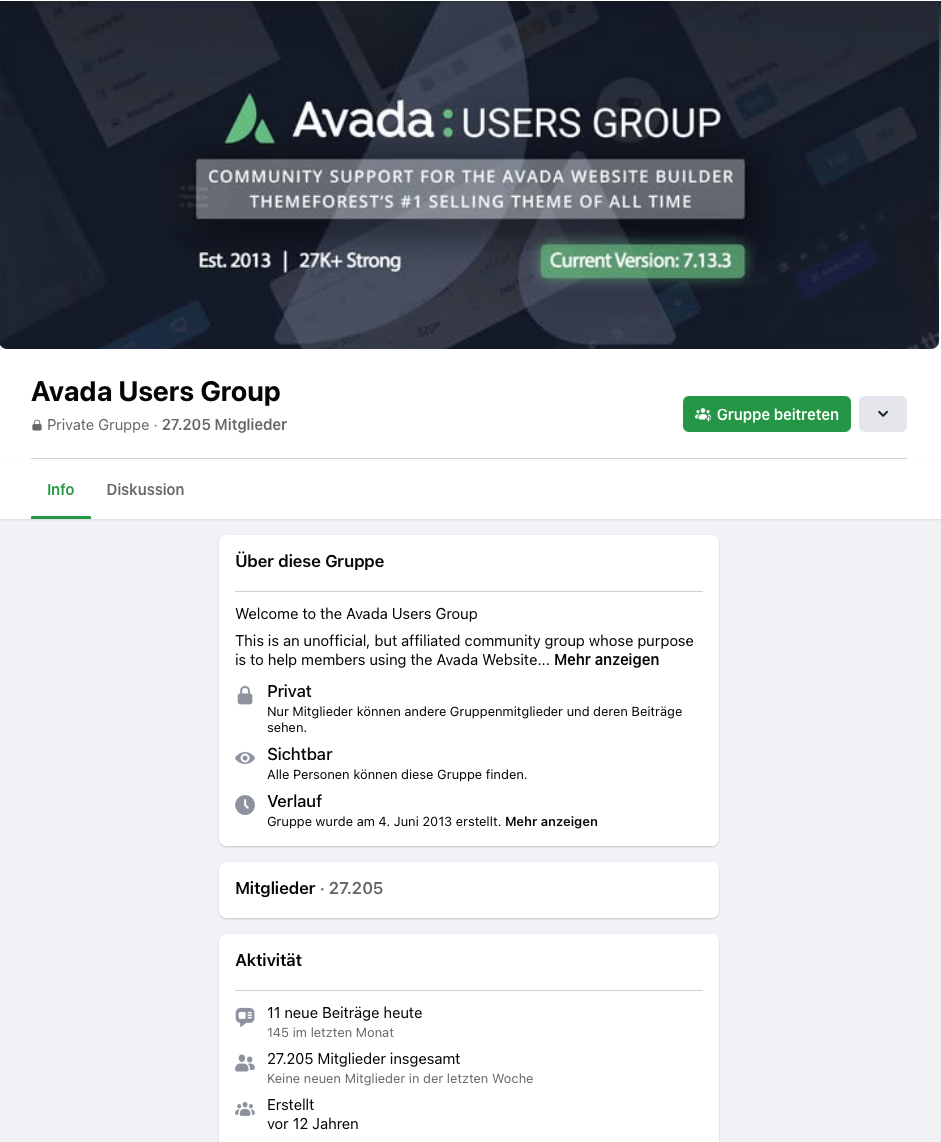 Ich prüfe zudem immer in Facebook Avada-Community Gruppen, ob andere Probleme erfahren haben.